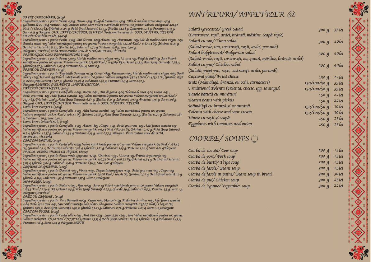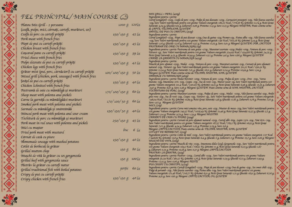 Mai jos puteți vedea meniul Casei Cențiu și câteva din preparatele noastre atent alese, pentru ca dumneavoastră să aveți parte de o masă aparte.